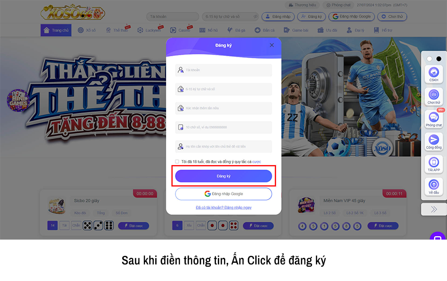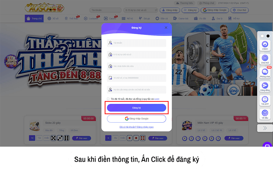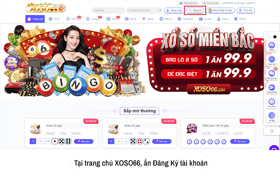 Đăng ký tài khoản tại XOSO66